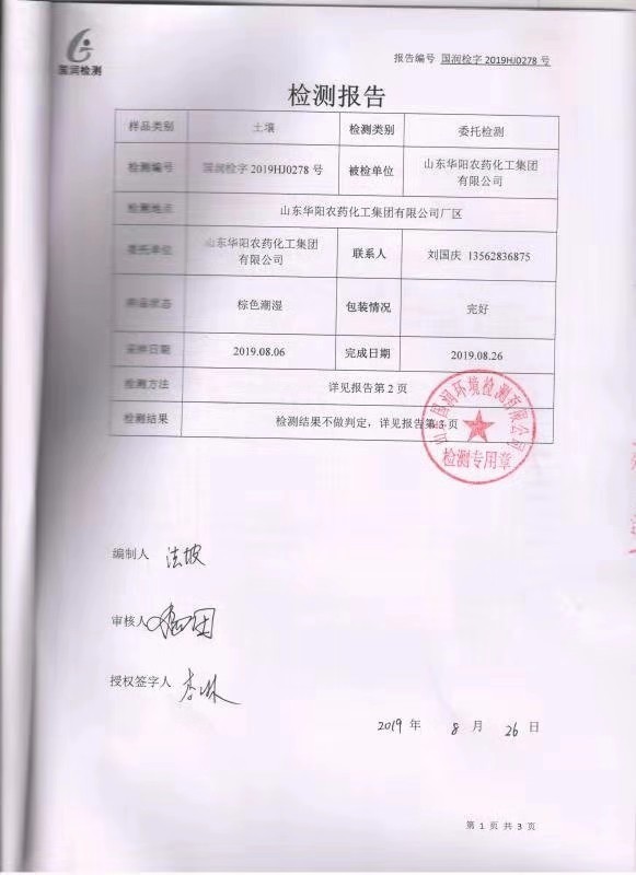 公司動(dòng)態(tài) 首頁(yè) > 華陽新聞 > 公司動(dòng)態(tài) > 列表 山東華陽農(nóng)藥化工集團(tuán)有限公司土壤環(huán)境檢測(cè)報(bào)告